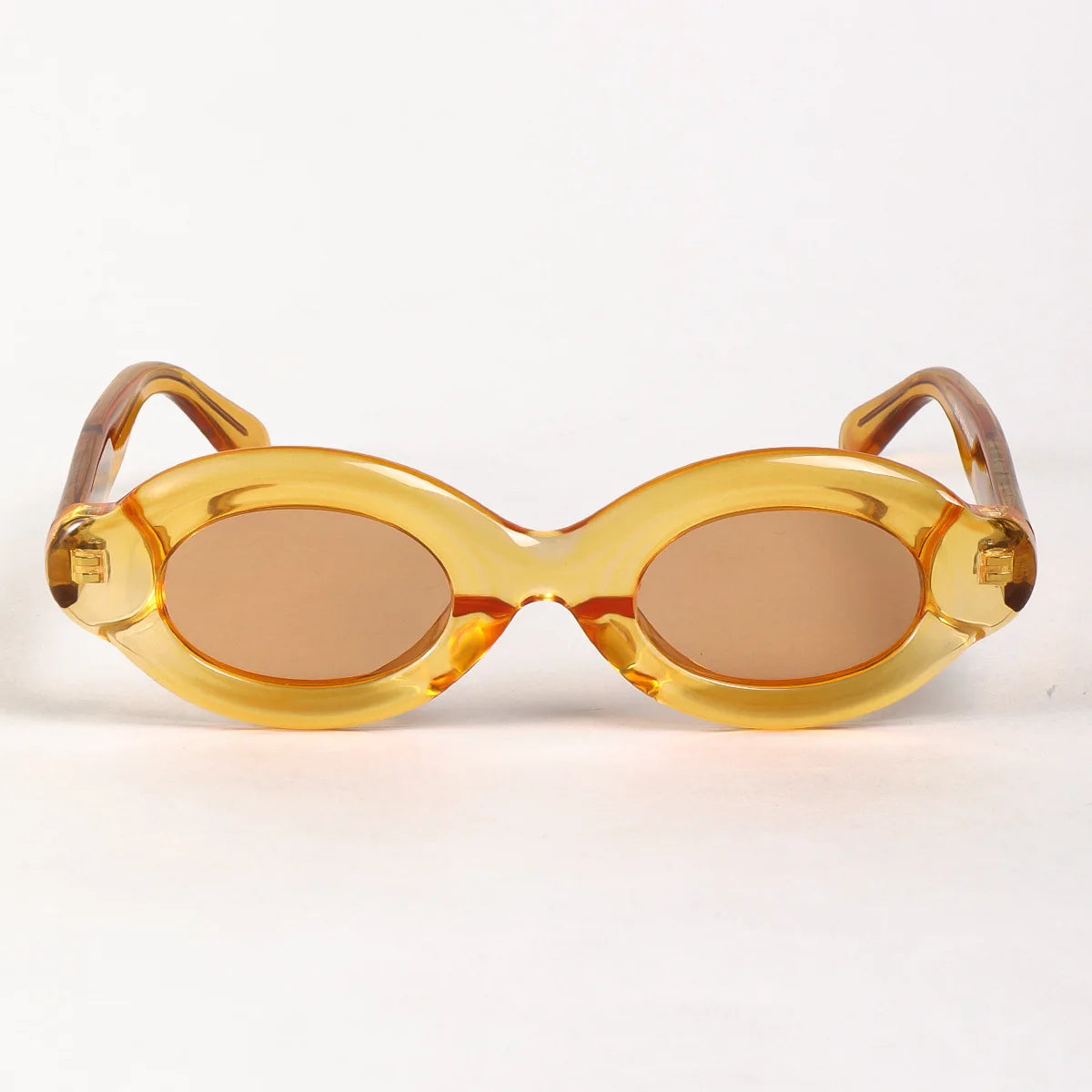 Sculpted with a richly dimensional frame and softly rounded lenses, these statement sunglasses blend vintage character with modern polish.